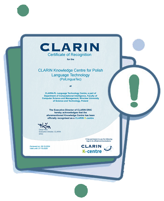 PolLinguaTec – Centrum Wiedzy CLARIN Technologii Językowej dla Języka Polskiego